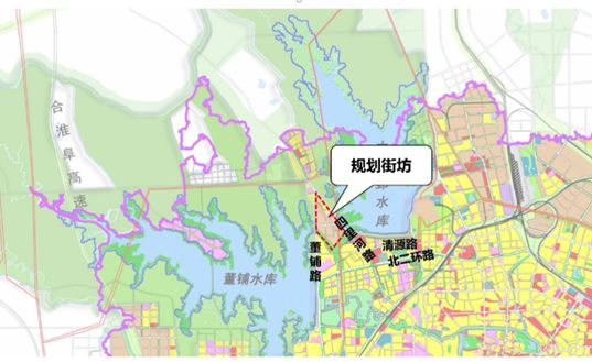 项目位于合肥市庐阳区大杨镇,东至四里河路,南至溢洪道,西至董铺路,北至四里河路与董铺路交叉口。街坊总面积为119.94公顷(1799.1亩)。