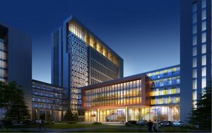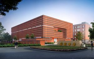 设计师以不对称、咬合、内聚等经典、永恒的建筑语言,来塑造物质科研园区的形体关系,将抽象的分子结构的图形无序而有机的运用在立面设计上,体现科研建筑特性,展现质朴、富于内涵的建筑形象。用现代主义的建筑手法,采用立面模数化设计,强调建筑的整体轮廓和线条,将“科技,人文”的理念引入其中,使园区更添一份人文气息,舒适典雅,又极具现代感。