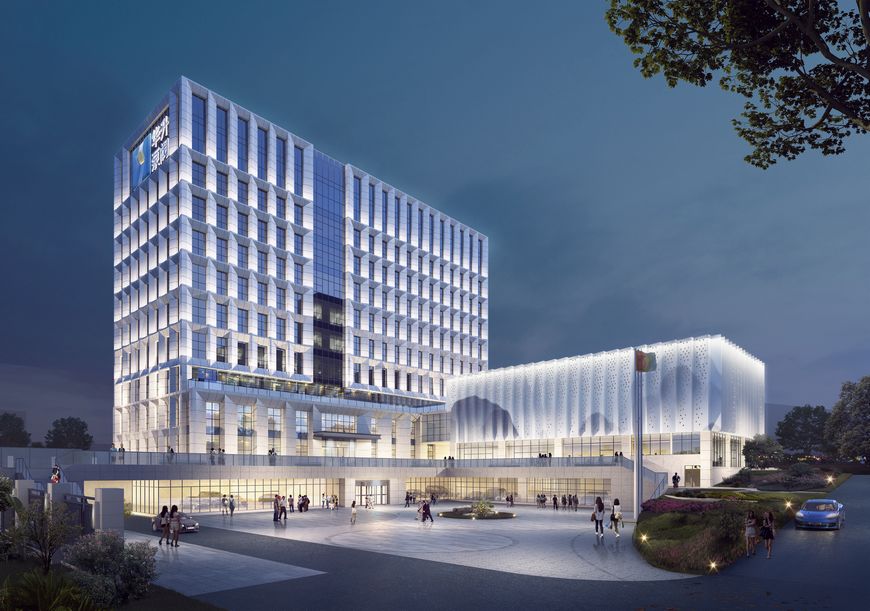 合肥东部新城特勤消防站位于肥东县西南侧,北临撮镇路,东临规划道路。本项目总建筑面积:17143.0㎡,地上建设主要内容包括:执勤楼、综合训练馆、宿舍楼、室外体能训练塔。建筑以简洁现代的风格为基调,注重体块的虚实结合和穿插错列。执勤楼依据建筑的主要功能模块:门厅、消防车库及战士宿舍、三到八层的管理办公空间,将形体分为三部分。门厅在大面的玻璃上穿插消防标识形成入口的焦点,消防车库的红色体量形成“消防箱体”,三到八层管理办公空间设置竖向线条,将不同内部功能统一在完整的表皮肌理下,凸显整齐划一的部队文化。
